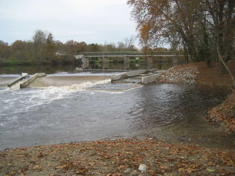Les travaux rive gauche (Chassenon) sont terminés depuis un mois, mais ils continuent rive droite (Etagnac) : il s'agit de creuser les fondations de la future usine, un peu en aval de l'ancienne. Pour cela, le chenal est approfondi. Au droit de l'ancienne usine, les creusements viennent de faire apparaître une maçonnerie de gros appareil à sec, avec traces de crampons. Ce sont deux niveaux superposés d'une fondation à débord, en appareil de granit analogue aux piles découvertes cet été. Cette fondation portait encore, voila un an, le premier refend Sud de l'ancienne usine. Elle est parallèle à son pignon Sud, dont elle est éloignée de 7m40 (hors oeuvre). A partir de l'angle nord-ouest (aligné sur le long-pan Sud de l'usine), l'ouvrage présente 10m50 de façade, se terminant en aval par un départ à 45° pouvant faire partie d'un avant-bec.