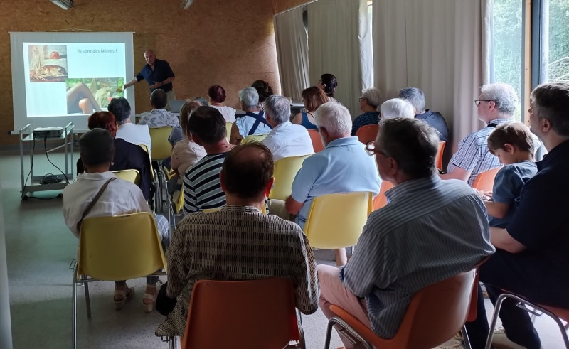 A 18H - l'apéro-conférence réunissait 59 personnes attirées par le thème "Premières gorgées de bières gauloises et romaines" présenté par Philippe Marinval, archéobotaniste.