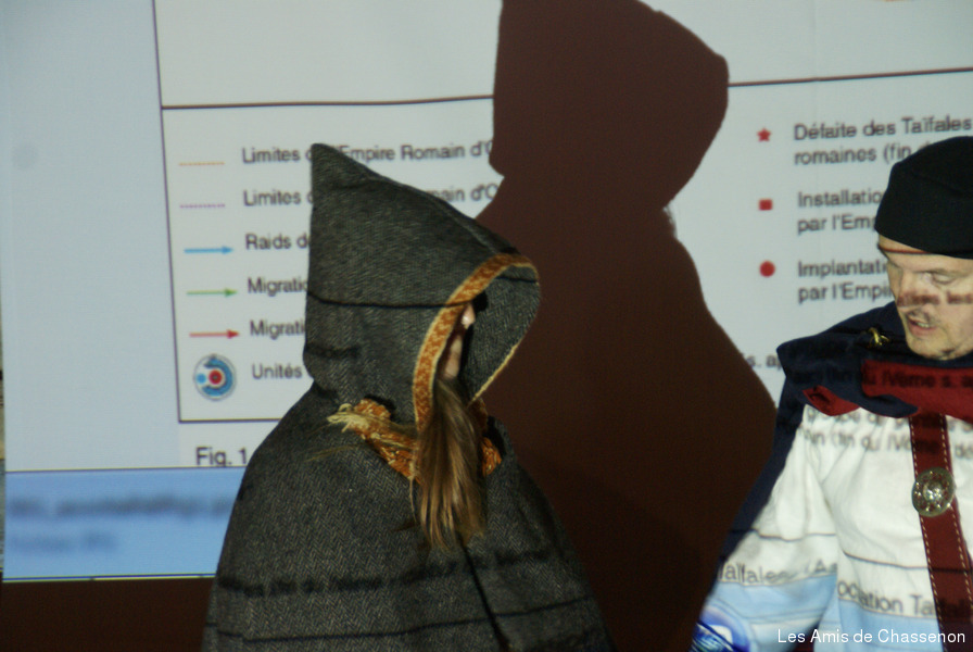 C'était le samedi 7 avril 2012, invité par les Amis de Chasenon, le groupe Taifali de Rom est venu présenter aux Thermes ses reconstitutions dans le domaine de l'habillement et des armes. Involontairement pris dans le faisceau d'un vidéo projecteur, les ombres des personnages ont démultiplié cette présentation … voici quelques images insolites dans le diaporama qui suit !