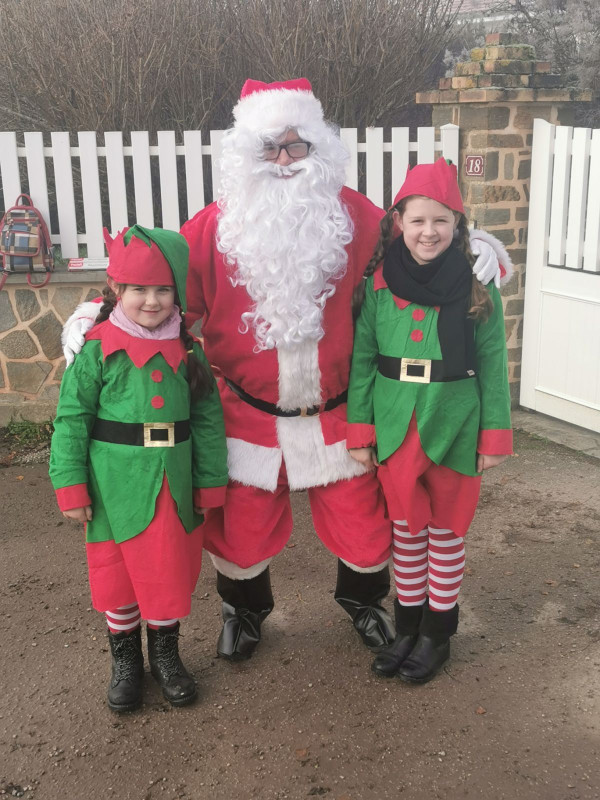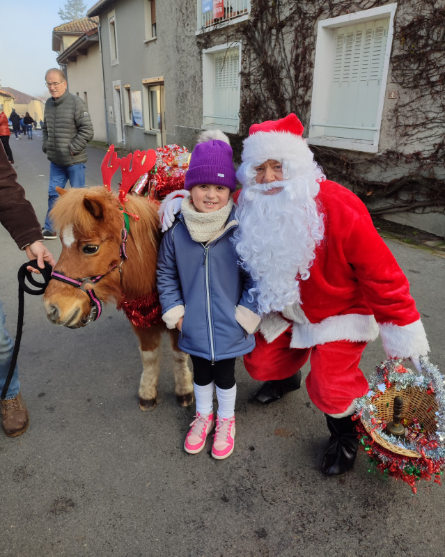 L’ambiance de Noël était joliment recréée avec l’arrivée du père Noël, escorté par deux fringants poneys parés de quelques décorations de fête et chargés de cadeaux et de paniers garnis de bonbons. Il était très gentil ce père Noël ! et tout le monde se pressait pour prendre la fameuse photo souvenir. Les deux sages lutins qui l’accompagnaient, étaient très occupés à la distribution des bonbons aux enfants sages. Un bon moment de convivialité très apprécié non seulement des petits mais aussi des grands.