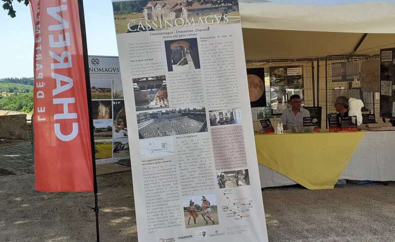 Du 28 au 30 juin, sur la place du château de Rochechouart, le stand commun d'Alfran, gestionnaire du site de Cassinomagus et de l'association des Amis de Chassenon a encore reçu de nombreux visiteurs, curieux de découvrir cette typique brèche d'impact de Chassenon de couleur gris-verdâtre, qui a servi à la construction du patrimoine local de Chassenon dont ses thermes gallo-romains les mieux conservés d'Europe et les plus monumentaux de la Gaule romaine.