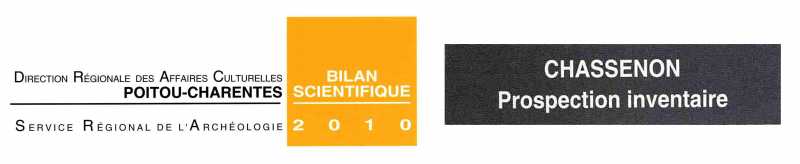 La DRAC de Poitou-Charentes, dans son rapport annuel (2010) du service régional de l'archéologie (SRA) a retenu son rapport de « Prospection inventaire » sur le territoire de Chassenon.