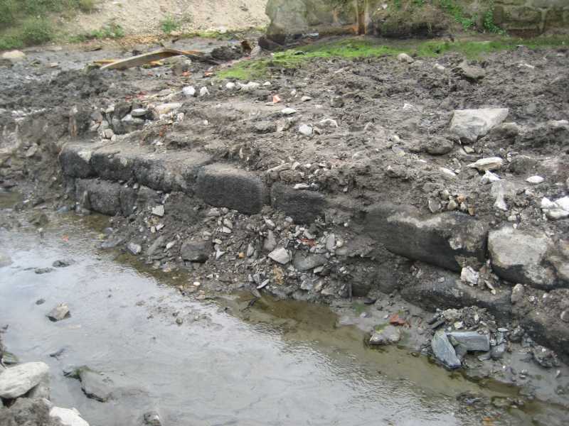 Beaucoup d'autres pierres du pont romain, déplacées, sont à récupérer au fond du chenal.
