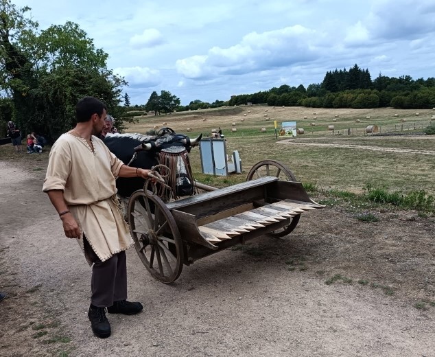 Mais la star du jour, c'était la moissonneuse actionnée par un docile attelage de boeufs.