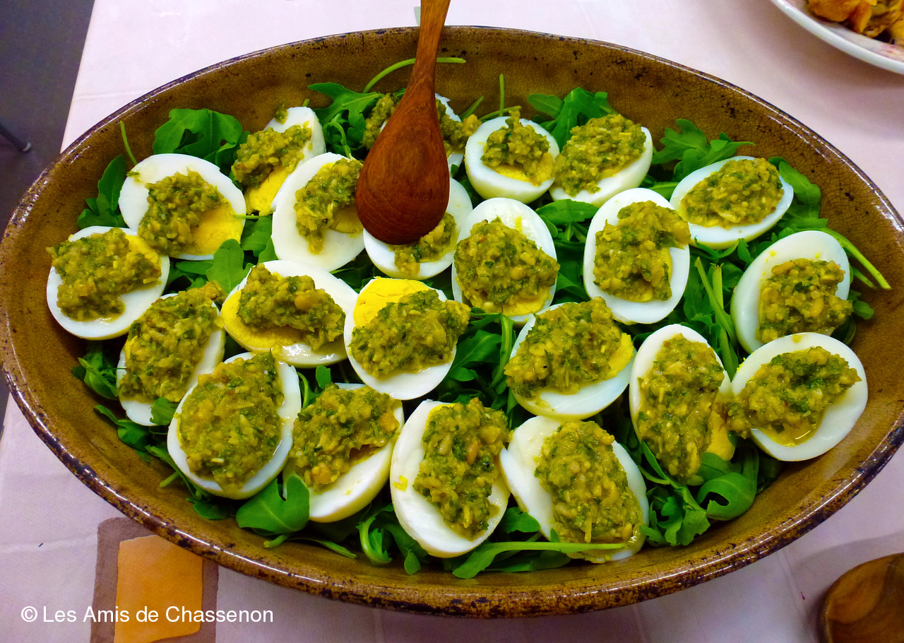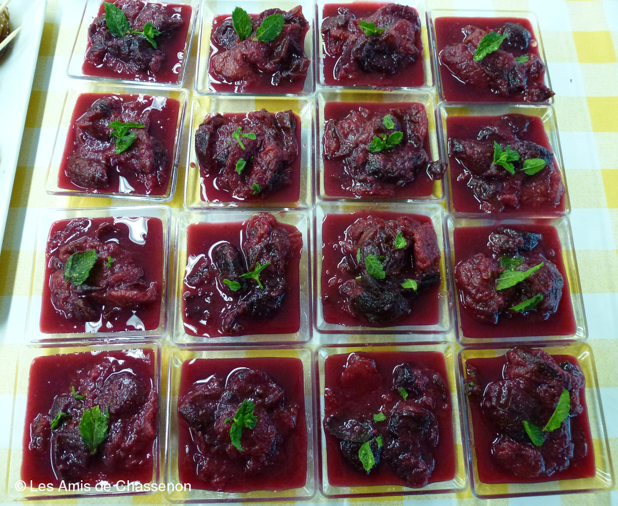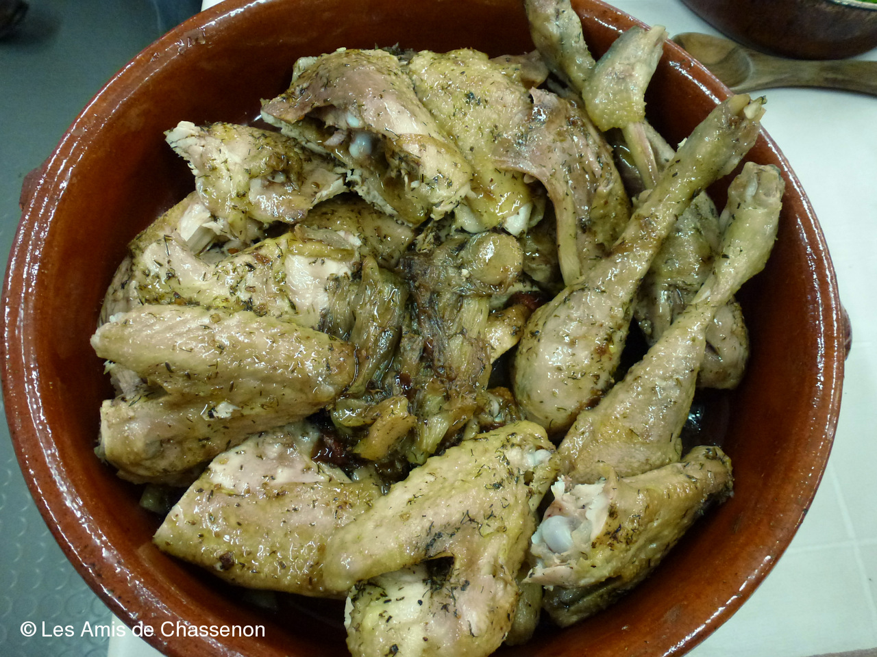 La journée des Amis de Chassenon 2013 était placée sous le signe de la cuisine Romaine et nombreux sont celles et ceux qui ont fait preuve de leur compétence dans ce domaine, tous ceux qui ont dégusté les plats préparés peuvent en témoigner. Les cieux ne furent guère cléments en ce dimanche d'août, la pluie présente tout au long de la journée ne permit pas aux visiteurs de venir partager ces goûts surgis du lointain passé . Et pourtant de plus, Jacques Marchand avait installé son four de cuisson de céramique et malgré les trombes d'eau il réussit avec succès à réaliser un cycle de cuisson complet. Geneviève Devautour s'était mise à l'abri sous l'auvent des salles de réunion pour montrer aux visiteurs la subtilité de fabrication des pièces en poterie. Dany Potel a attendu en vain les enfants à qui il voulait faire découvrir les goûts des plantes romaines, mais il a réussi tout de même à découvrir la Reine du Parc de cette pluvieuse journée, elle était charmante. Seule Mélanie Gaignerot ne fut pas gênée par le déluge, elle avait programmé une conférence sur la cuisine romaine antique et elle fit salle comble!